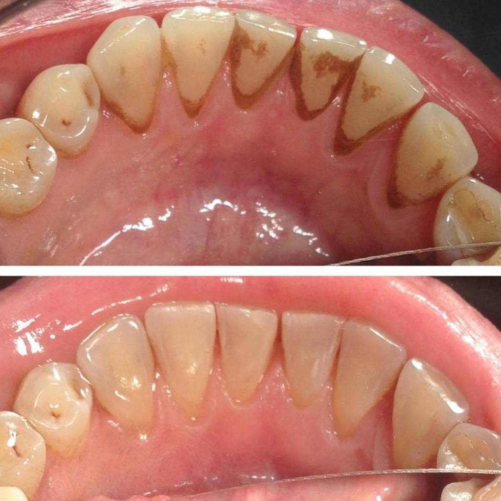 ✔ Снимаем зубные отложения, удаляем пленку от никотина, темные пятна от кофе и чая