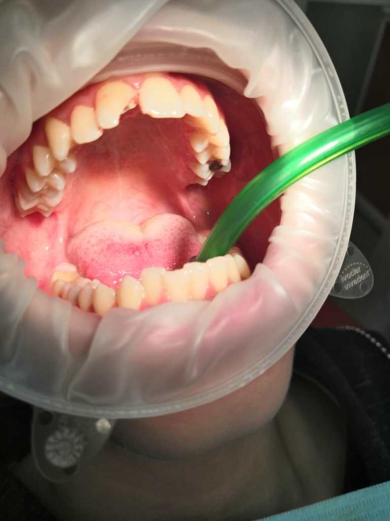 Клинический случай : скол переднего зуба 1/2, (была предложена реставрация) восстановлен стекловолоконным штифтом и сделана реставрация гелиокомпозитом
