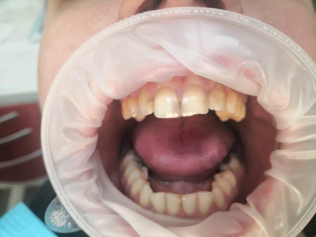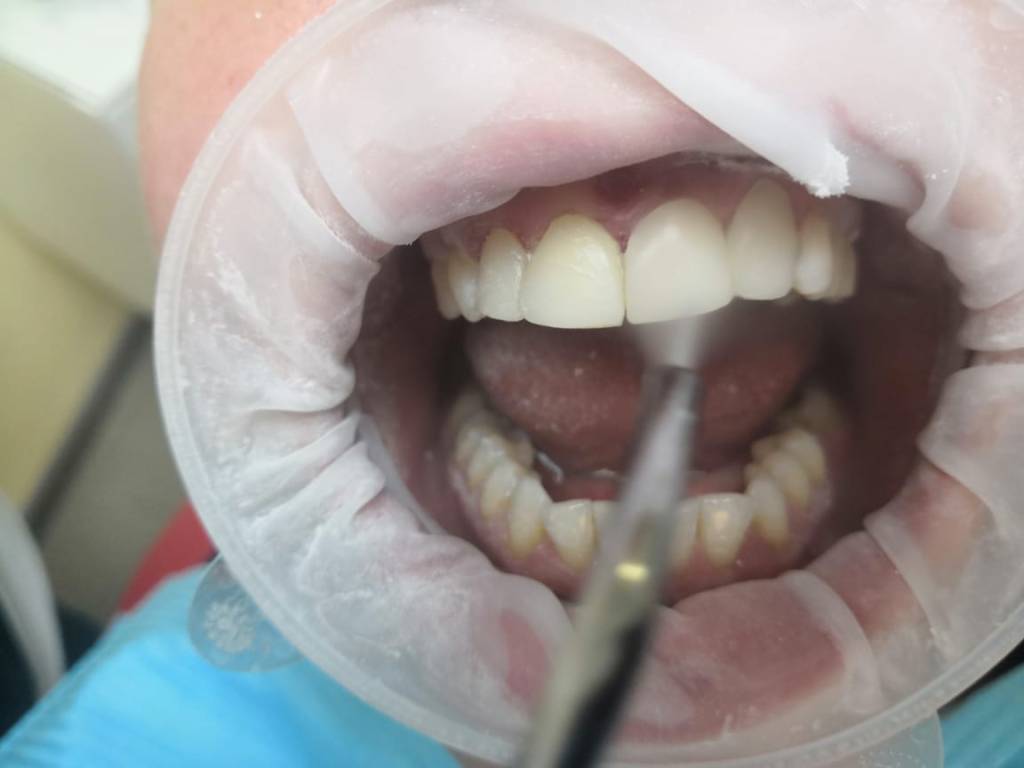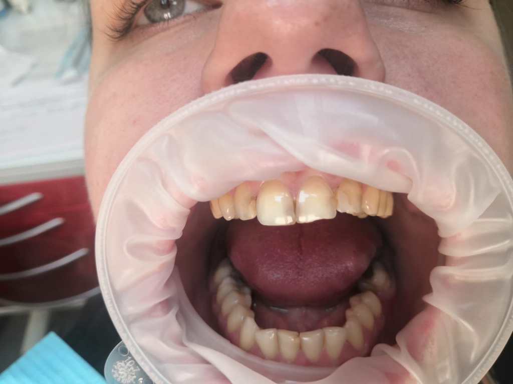 Клинический случай : Пациентка обратилась с жалобами на пломбы передних резцов (верхняя челюсть), была предложена реставрация
