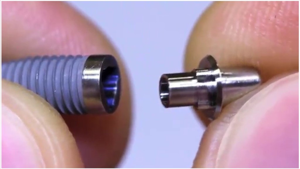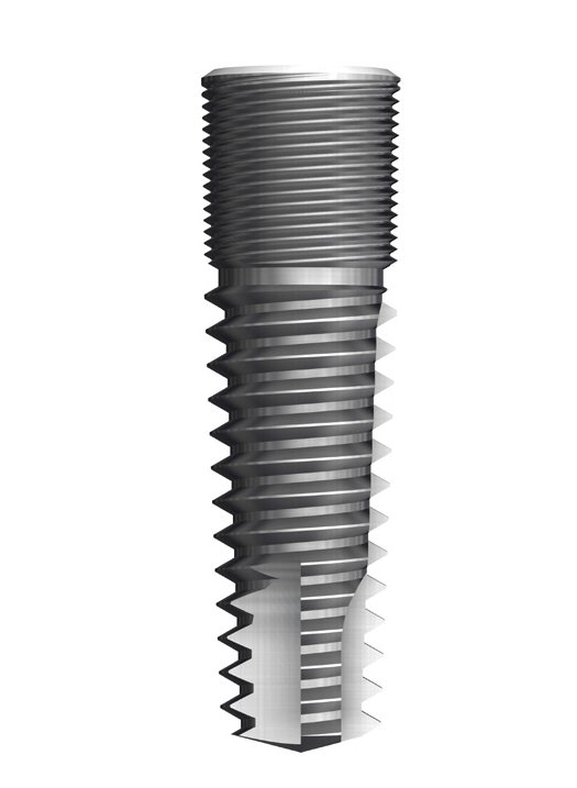 Если посмотреть на изображение таких изделий,то их конструкция может показаться очень простой:конусообразный винт, который вкручивается в кость. Однако, кажущаясявизуально простота обманчива. Винтовой имплантат – это сложная конструкция,«работа» которой предусмотрена в системе с другими элементами.На конечный результат влияют (не упоминая работы специалистов):собственно, имплантат, абатмент, формирователь десны, протез,а также устройства, конструкции и приспособления, связывающие между собойимплантологический и ортопедический этапы лечения (например, трансфер и аналог).Имплантат здесь – опора, от которой, в определённом смысле, зависит остальное.От качества исполнения и качества материалов, от точности, от дизайнаконструкции зависит, насколько имплантат приживётся и насколько надёжной будет его «работа». Кажущаяся простота обнаруживает себя и в понимании внедрения импланта в кость. Да, имплантат «вкручивается» в подготовленное для этого ложе; однако напрашивающиеся аналогии в виде «винтов» или «шурупов» совершенно некорректны. Стабильная «работа» и надёжное положение имплантата в кости напрямую связаны с таким явлением как остеоинтеграция, когда костная ткань срастается с поверхностью внедрённой конструкции.