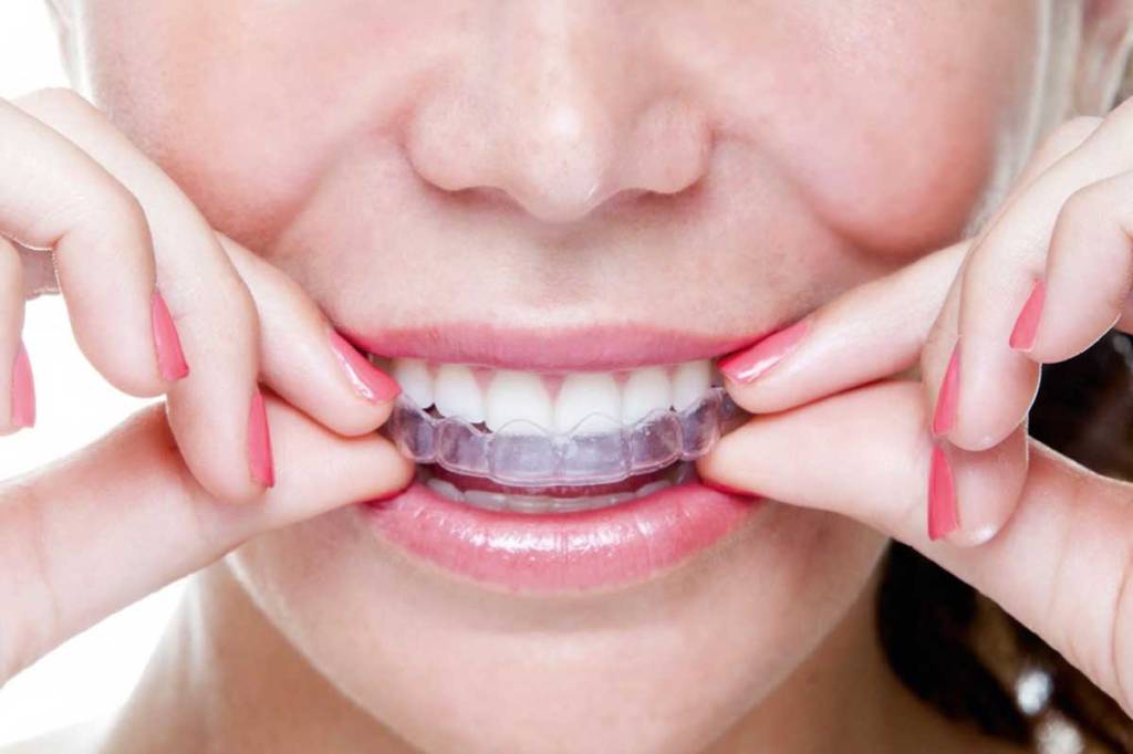 - Капы имеют форму, «задающую» некоторую часть смещение зубного ряда.Когда такая капа для зубов надета, она «тянет» зубы в нужную сторону.